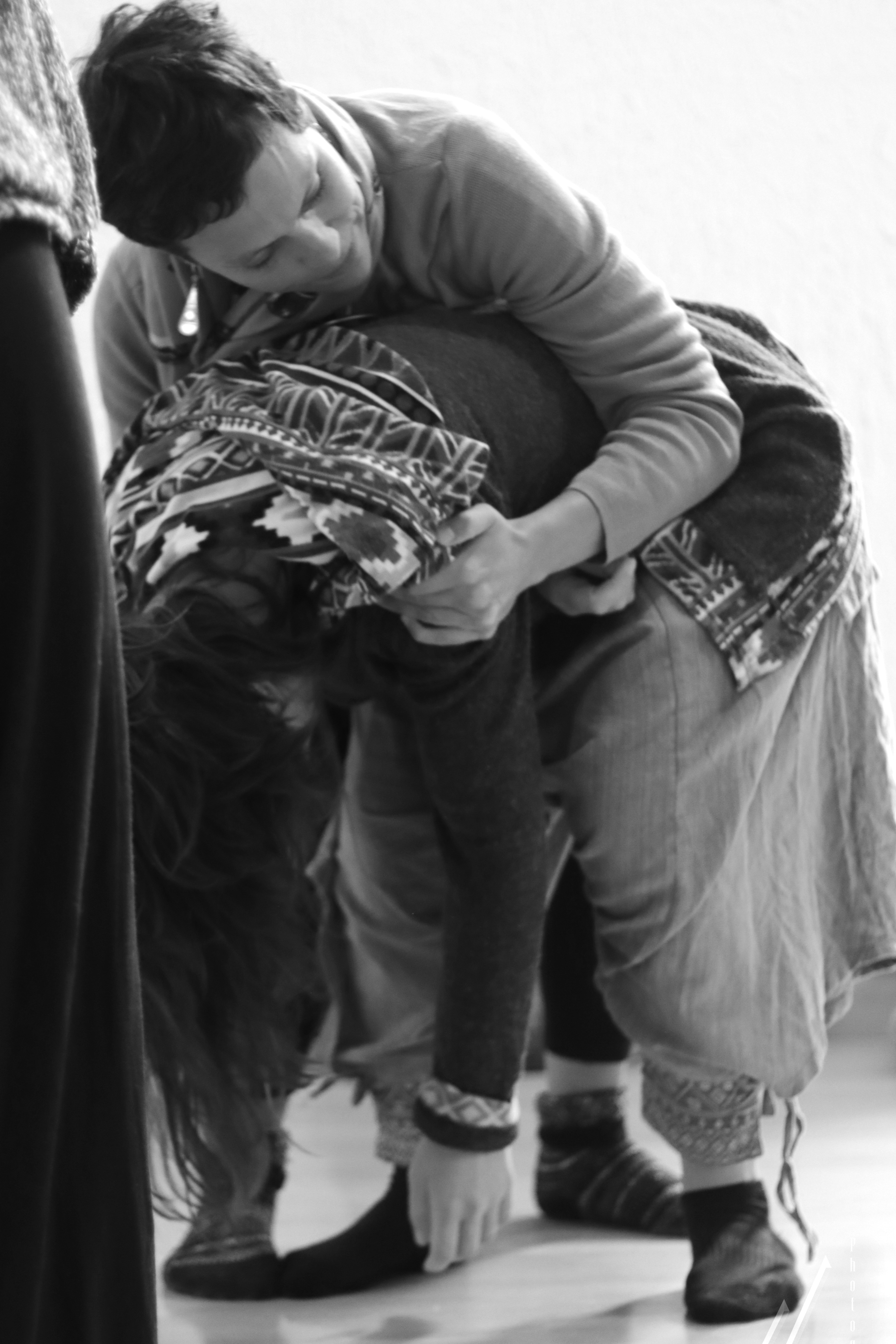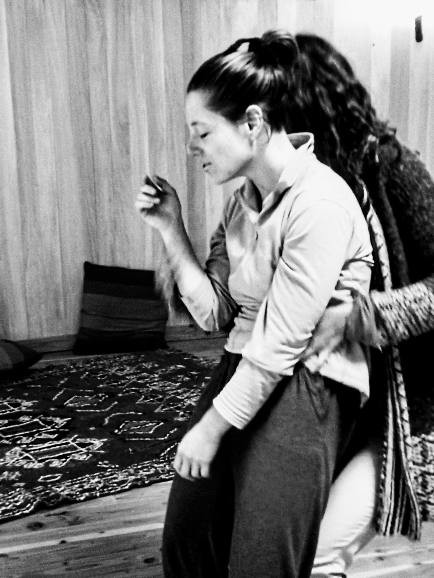 « Je sors d’un stage d’une semaine avec Yasmine, et j’ai le corps en compote et le cœur qui pétille, les yeux qui s’écarquillent, ça grouille de ce qui est là, présent dans mon dedans et mon dehors, dans l’accueil des potentiels qui arrivent, j’ai envie de créer encore et encore, de garder cette folie qui déborde, de tordre mon corps dans tous les sens pour en faire jaillir du nouveau, du stagnant, là, bien au fond, j’ai envie d’ouvrir tous les espaces possibles dans mon body, d’y trouver des sources de résonances nouvelles et magiques, de sortir la bouillasse et de la sonoriser comme je peux, de vibrer les traces et de tracer ma vibrance, de continuer à faire jaillir nos voix et à embaumer l’espace de nos sonorités, de devenir cette poupée de chiffon de l’instant, perpétuellement, innocemment, mystérieusement, et légèrement. Merci Yasmine pour ton accompagnement généreux, pour ta douceur profonde, pour ton invitation à lâcher-prise en pleine conscience, pour ta contamination créative. » Anaïs P. – oct22